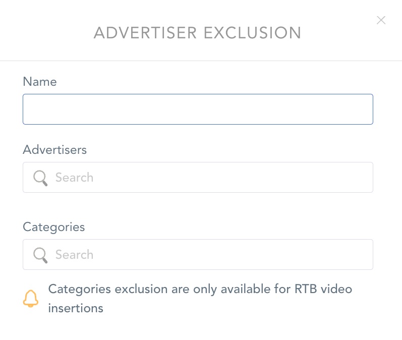 With advertiser exclusions, you can ensure that creatives from insertions under different advertisers never appear together on the page or—in case of in-stream video ads—never appear in the same video ad pod.  Advertiser exclusions require OneCall ad requests. For more information about OneCall, see Comparison OneCall tagging vs. Standard tagging. Advertiser exclusions are not compatible with group volumes. If you have to combine group volumes and advertiser exclusions, you can create an insertion exclusion as a workaround, as explained in section "Insertion exclusions" earlier in this document.